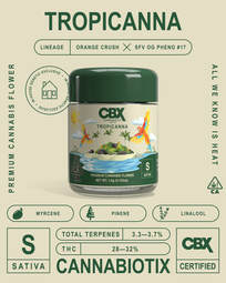 Tropicanna is a two-time award-winner and High Times Top Ten best-tasting strain honoree — and one taste tells you why. This sativa-dominant hybrid opens with fresh-squeezed orange and tangy pineapple, then delivers a bright, cerebral high that's equal parts energizing and creative. A daytime staple built for those who want to stay sharp and inspired.